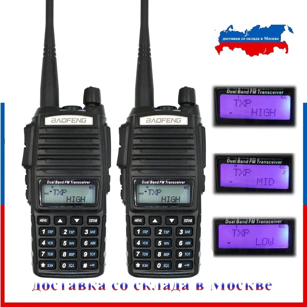 HOT Sale 2pcs/lot BaoFeng real 8W UV-82 High Power Two Way Radio Portable Radio Dual Band VHF/UHF 10km long