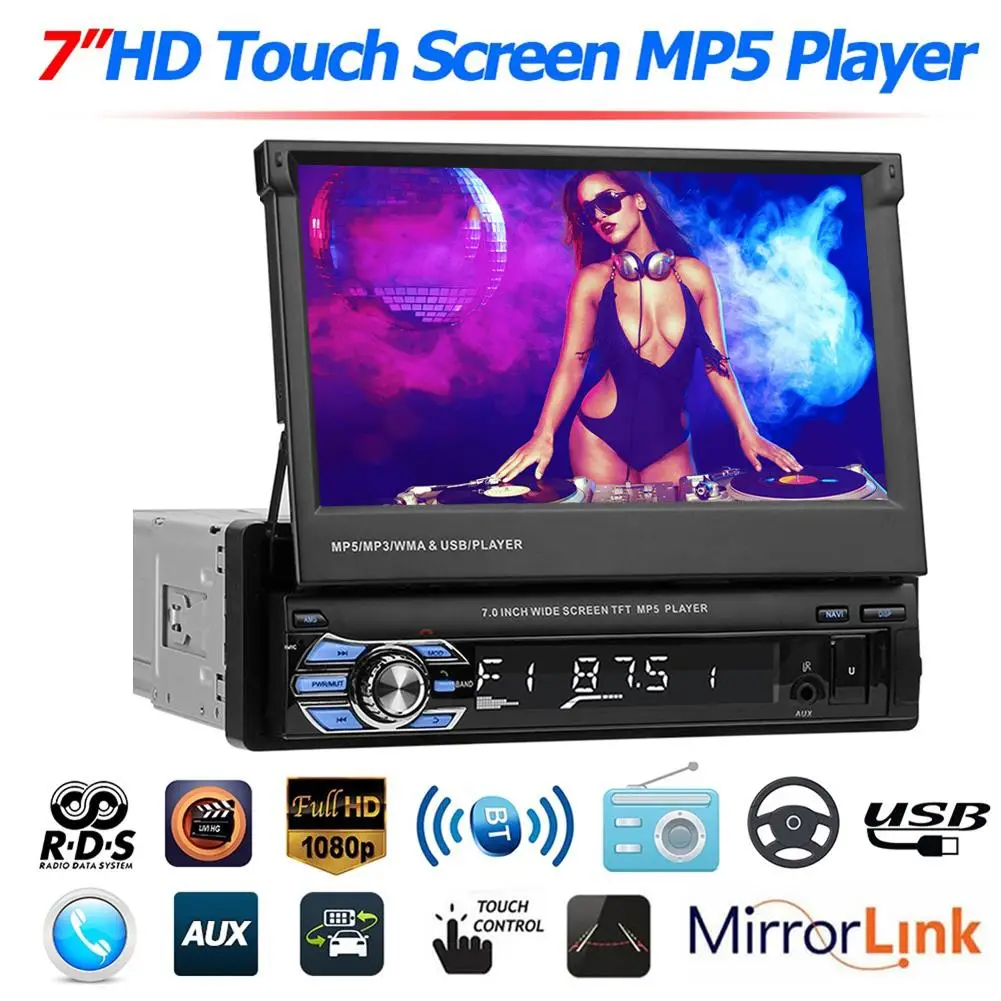 BEST 7 Inch Car MP5 Player Stereo RDS AM FM Radio GPS Navigation Retractable 1 DIN Car MP5 Touch Screen